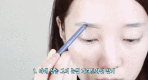 Step4、平眉最合适装素颜啦,眉头浅眉尾深的方法用眉笔填满颜色,在用眉梳均匀颜色,这样画的眉毛最自然啦。