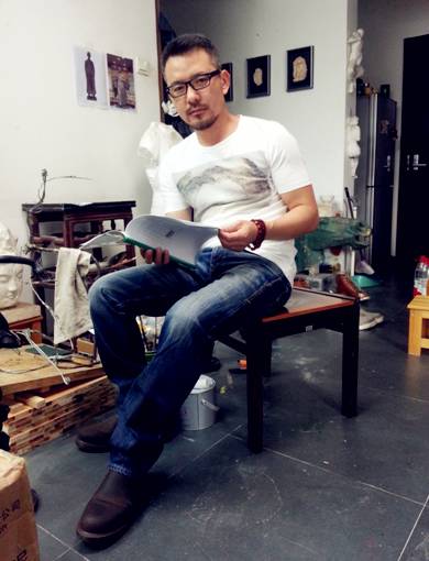每年有几个月,他都会去别处游历。巴黎铁塔,日本海滨,美洲大陆的风土人文都是他的收获。然后,收起行囊,再回到这个节奏不那么快的城市,一头扎进自己的小天地。与自己手里的形象聊天。有时抚琴,静心思考。有时就让脑中的形象飞速的呈现在手中。他做雕塑大多是不画稿的,架子支起来,心里有了一个念想,很快一个人形大致就能呈现出来,很多神来之笔他自己也会有些小得意。