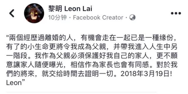 昨天下午,黎明在Facebook宣布了自己当父亲的喜讯,而早在两个星期前就被香港周刊爆料,黎天王恋上了小19岁的女助理阿Wing,更指两人已同居,没想到就在昨天下午又爆出阿Wing已怀有6个月身孕的消息。