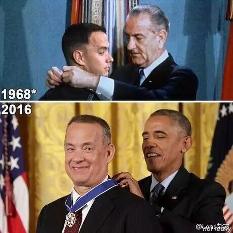 2016年,奥巴马在白宫授予汉克斯总统自由勋章,以表彰他在文艺领域的杰出贡献。