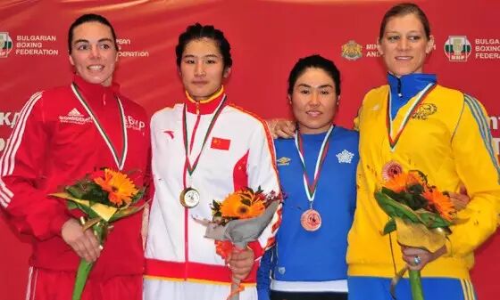 李倩(左二)夺得2015年保加利亚国际拳击大赛女子75公斤级金牌