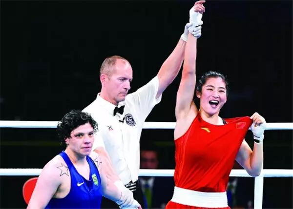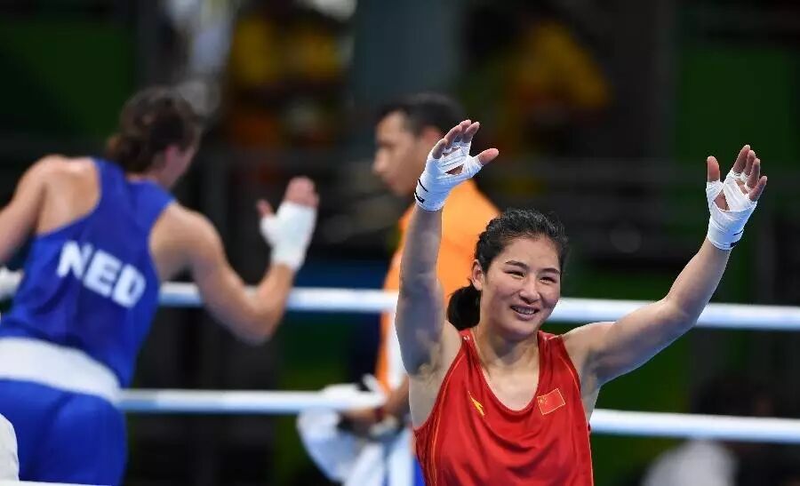北京时间8月18日,在里约奥运会女子拳击75公斤级1/4决赛中,代表中国出战的中国海洋大学拳击队队员、运动训练专业学生李倩击败巴西选手,晋级半决赛。