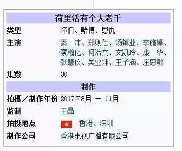 根据维基资料显示,这是TVB香港电视广播有限公司和王晶公司合作拍摄的又一部新剧——《荷里活有個大老千》,是延续80、90年代一度盛行的赌片、赌神的元素来重新炒炒,类型就是怀旧赌博恩仇剧。阵容中的主角就由曾经港片中的资深艺人秦沛、郑则仕、汤镇业领衔主演,年轻的由蔡瀚亿、何浩文、文凯玲、康华、李施嬅、吴业坤等人出演。