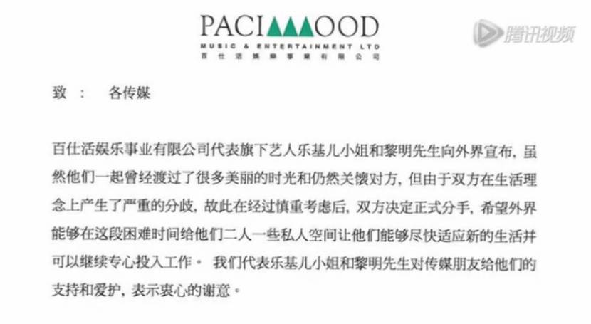 ▲2011年7月,黎明突然辞去和乐基儿联名的“昕倩有限公司”董事,乐基儿对“黎太”的称呼一副“随便啦”的态度。