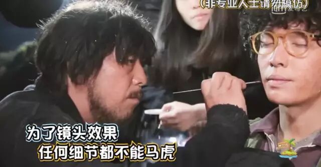不但手把手地教,黄渤就连一些妆都要亲自上手。