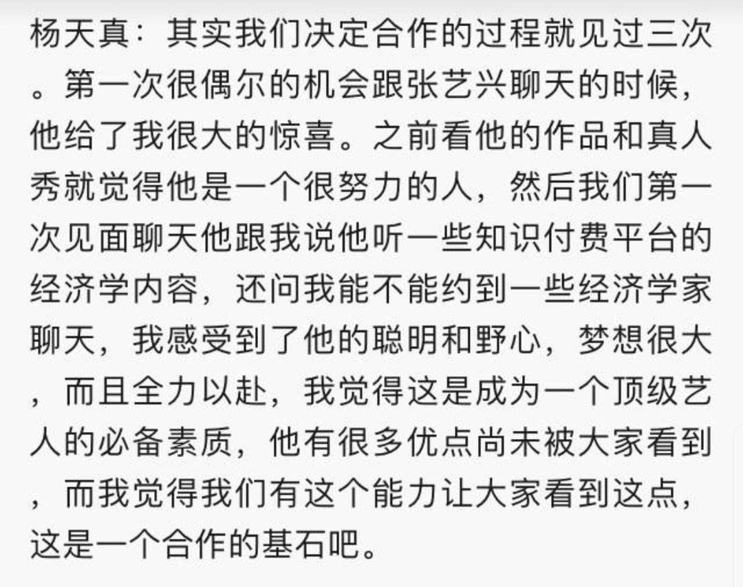 毕竟,杨天真也说了张艺兴还有许多潜质尚未被发现,而她将让大家看到张艺兴的更多优点。