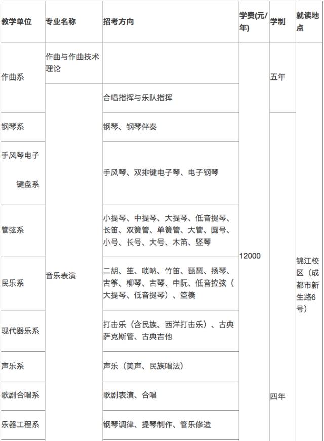 四川音乐学院,其前身是创建于1939年的“四川省立戏剧教育实验学校”, 历经“四川省立音乐实验学校”、“四川省立技艺专科学校”、“四川省立艺术专科学校”、“成都艺术专科学校”、“西南音乐专科学校”等时期后,1959年经教育部批准更为现名。学校有两个校区、占地面积1200余亩,下设31个教学院系、18个研究中心(院所)。举办有包括附中、专科、本科、研究生等层次的教育,在校生规模14000余人,在职教职工2000余人。
