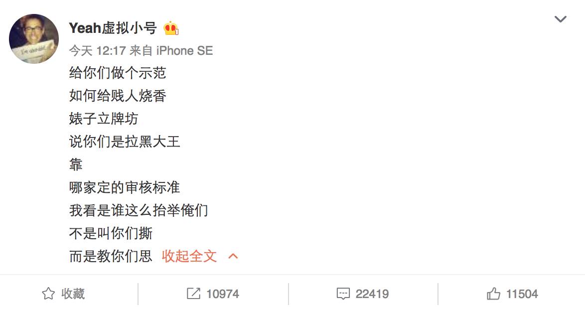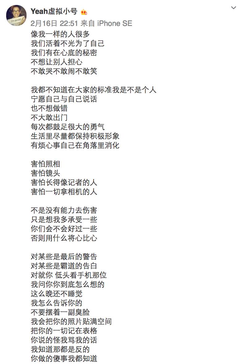郑爽的微博小号上,很多发泄情绪的内容都删掉了,却留下这样长长的一条。