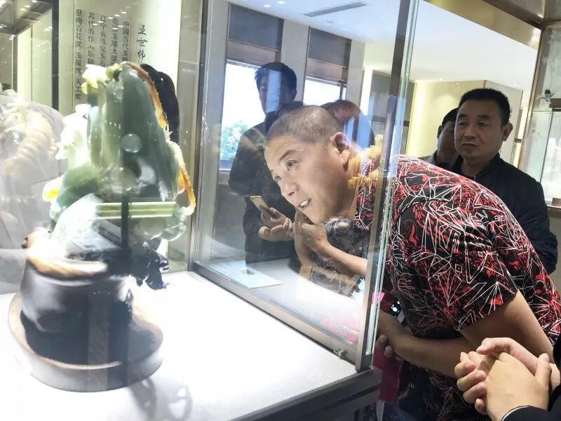 加盟商认真观摩玉雕艺术品《生龙活虎》2