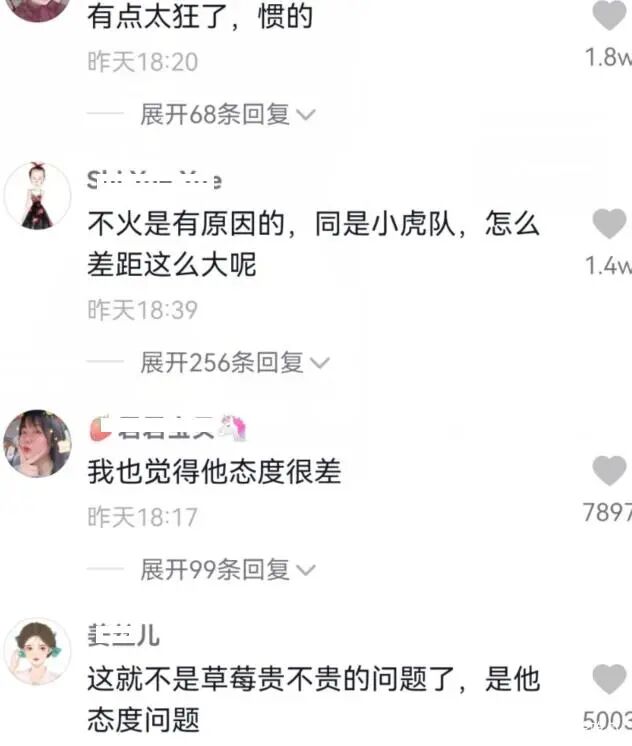对此,不少网友都表示,陈志朋太狂了,惯的,还有人认为,这不是草莓贵不贵的问题,而是他的态度问题。不过说实话,66一斤的草莓确实太贵,普通人的工资,一个月才几千块,这样的消费网友嫌贵也很正常。