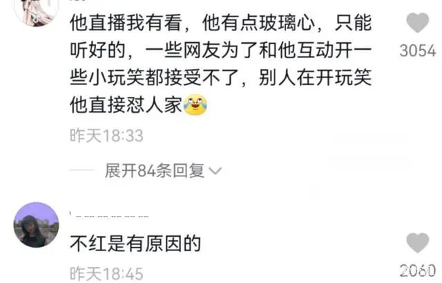 网友认为,陈志朋有点玻璃心,只能听好话,一些网友和他互动,开玩笑也不行,陈志朋直接怼别人,这样的心态,又怎么能做直播带货呢?不过陈志朋直播间的人气也不高,每次都不超过5千人,没人关注他也正常。