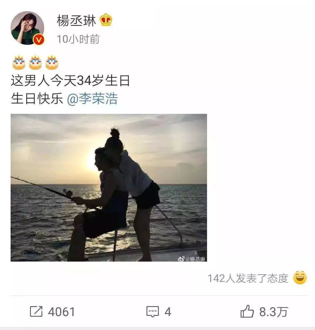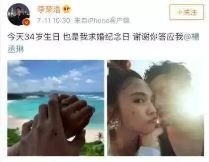 今天是李荣浩34岁生日,杨丞琳在第一时间送上祝福。