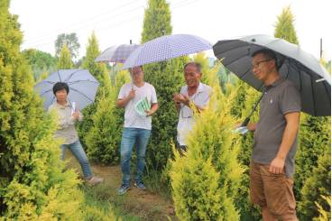 北京市花木有限公司陈菊部长(左一)带队考察储洪方的苗圃