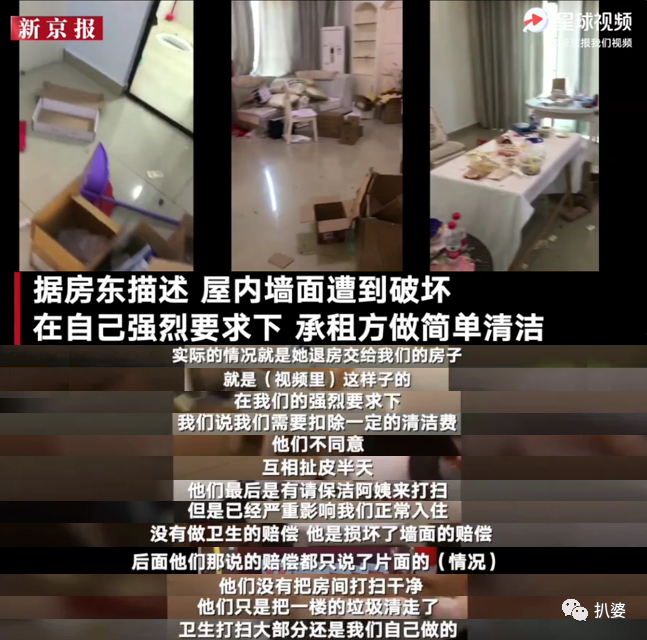 4,房东扭曲事实的把打扫前的房子视频发上网,却断章取义的对自己又打扫又赔偿的事实只字不提,这是恶意引导舆论。