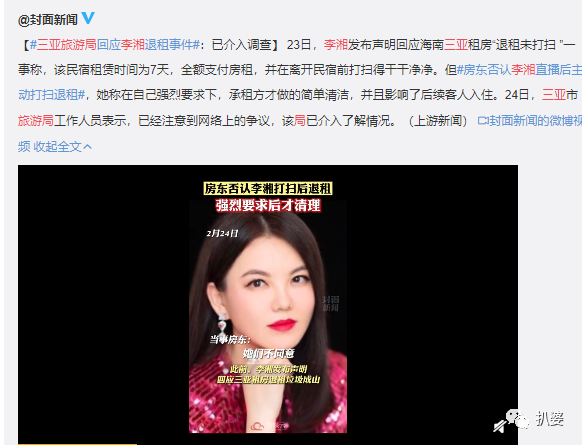 最新进展里,房东说和李湘团队有联系协商,事件已解决,不再回应。