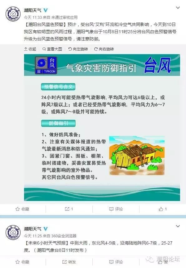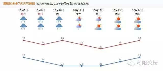 再来说说潮阳的天气,潮阳气象台已于8号上午11点25分将白色台风预警提升为蓝色预警。而潮阳气象台预报,8日11时起,未来6个小时内将会有中到大雨的降水过程。