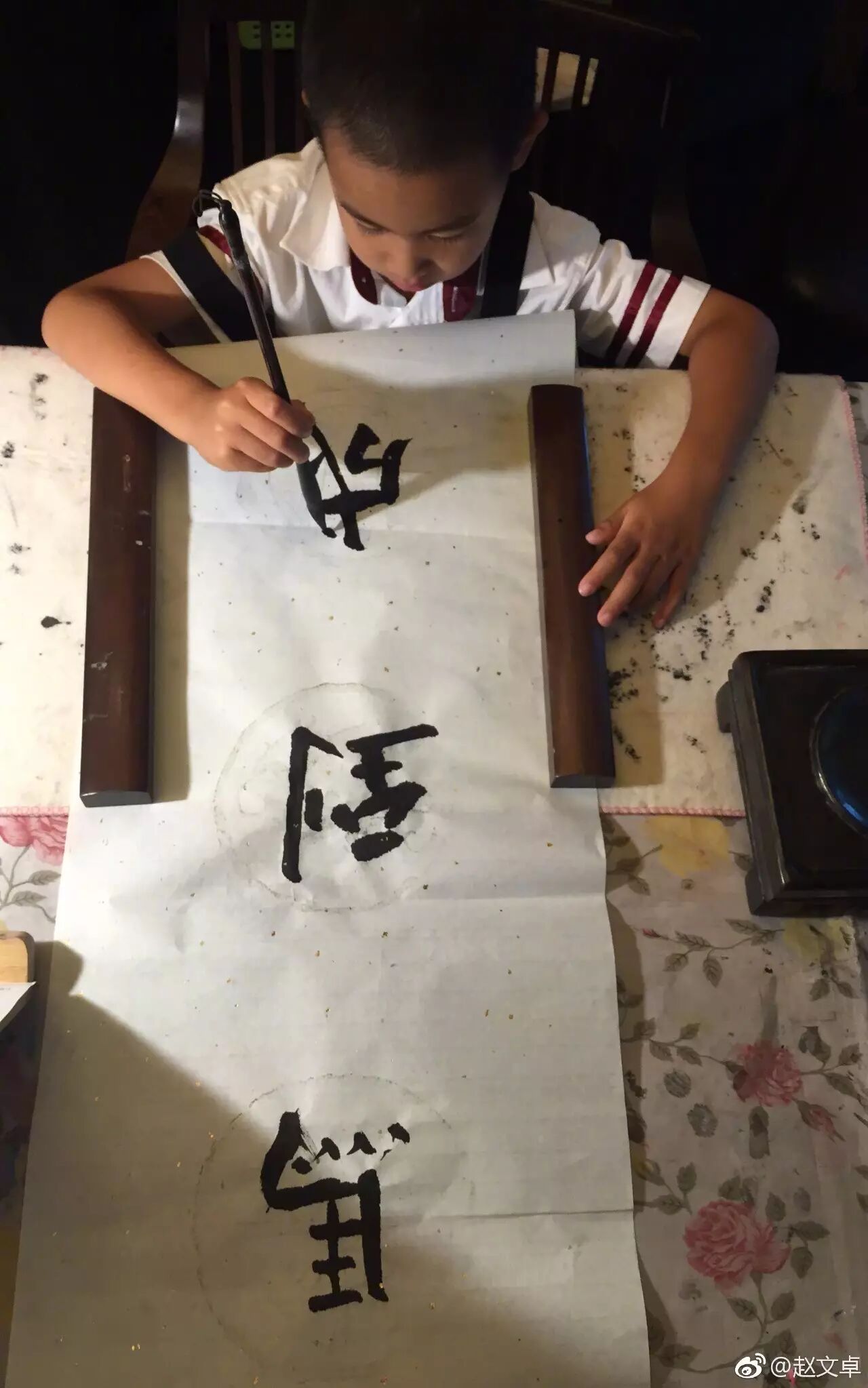 儿子练书法