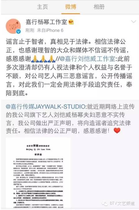随后,刘恺威和杨幂的工作室也都发声明说要用法律的手段终止谣言!
