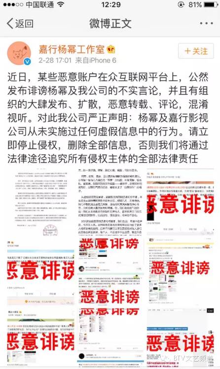 而这次的律师函,已经是嘉行工作室第二次告诽谤杨幂的人了,上次是在2月份。