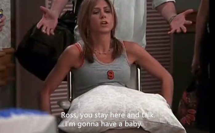 A:Ross, you stay here and talk. I'm gonna have a baby.