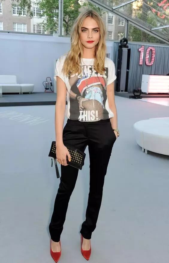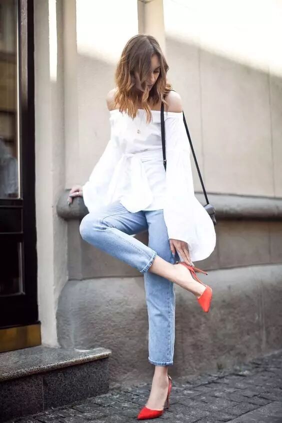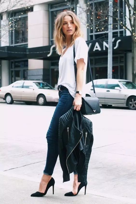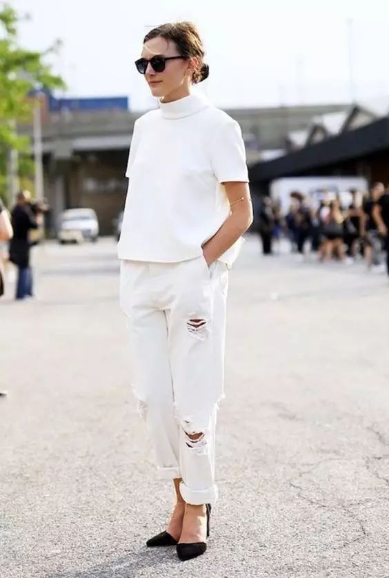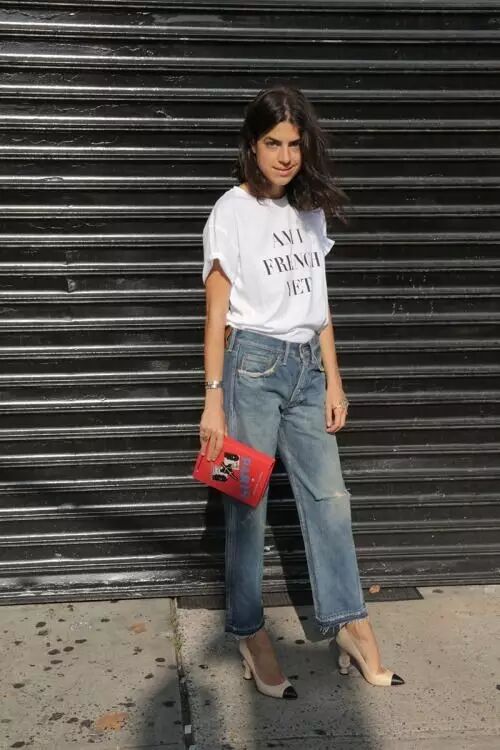 牛仔裤和T恤这两样单品听起来好像和尖头鞋没什么关系,但是它们搭配起来却是意外的好看噢!随性的牛仔裤和T恤有了尖头鞋的加持,变得更加chic,气场也变得更加强烈~▼