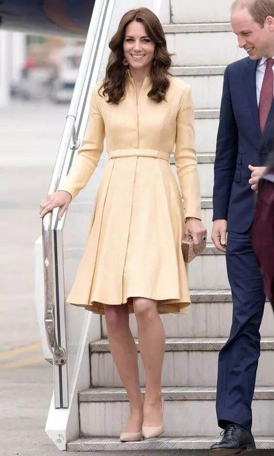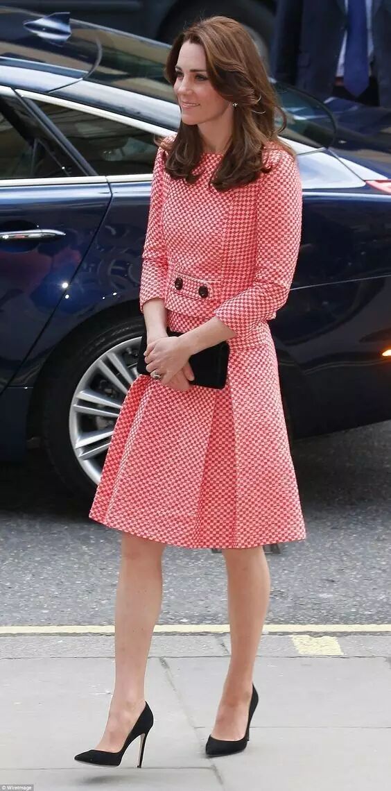 凯特王妃的搭配就更加端庄大气~平时喜欢穿连衣裙套装的姑娘可以参考她的搭配~鞋子的颜色要和连衣裙相呼应相协调噢!▼