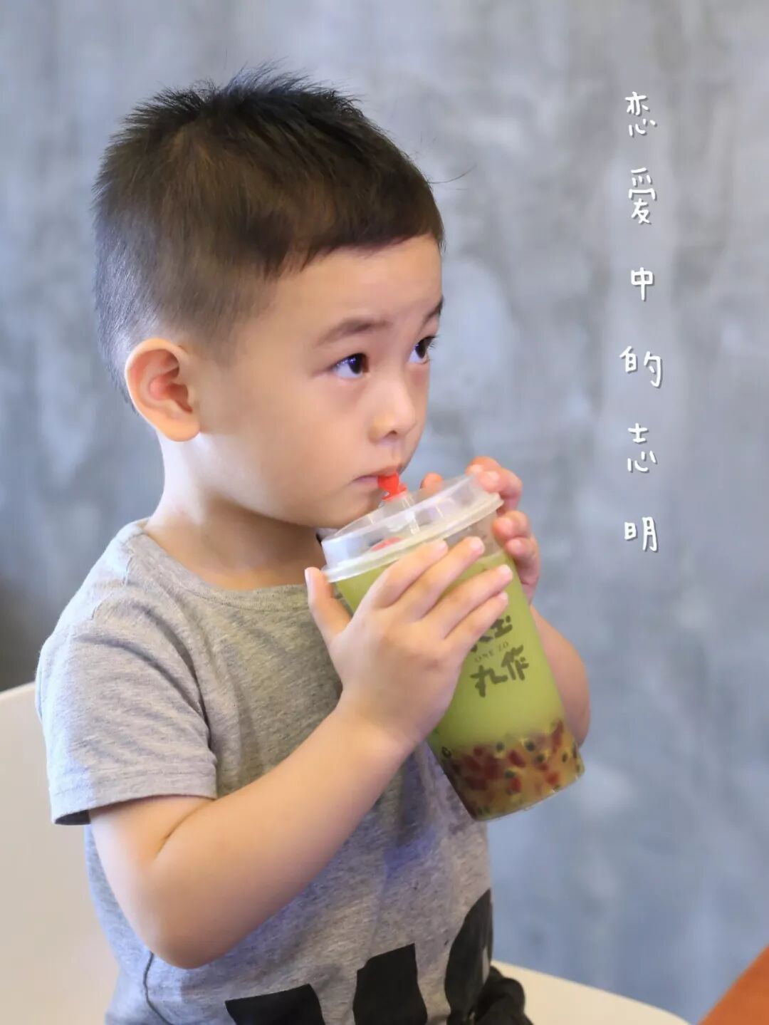 红黄的颜色搭配最吸引小朋友了。桌上一列的饮品,小朋友一把抱住了芒果多多,可见这杯堪称是孩子王。