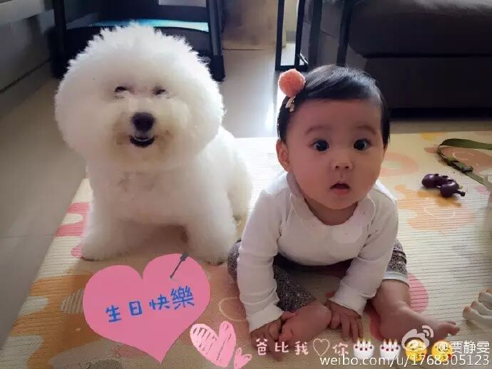 难怪节目里贾静雯形容她现在的生活“有很多彩色的泡泡”。看她家的狗,笑的眼睛都找不到了。