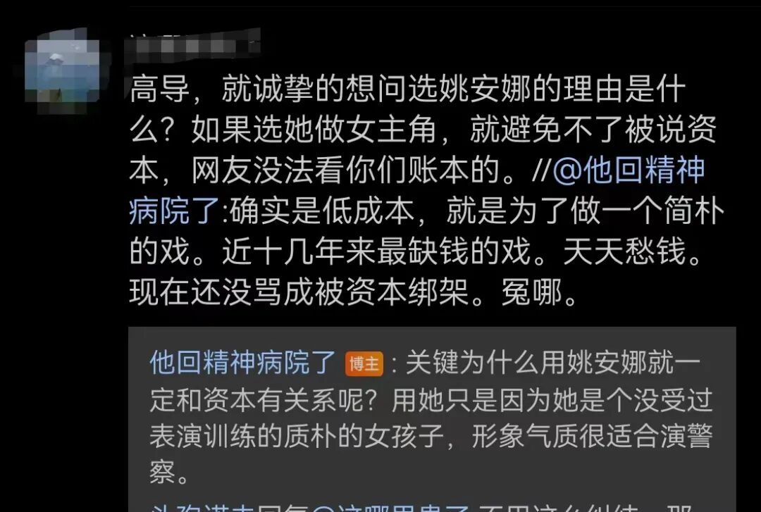 此外,也有一部分网友认为,作为华为创始人任正非之女,姚安娜参演这部剧是“带资进组”,高群书在微博留言中否认道:“华为怎么会投钱?任正非不会那么干。”他说,请姚安娜参演只是因为她是个没受过表演训练的质朴的女孩子,形象气质很适合演警察。他还表示,姚安娜的片酬并不贵。