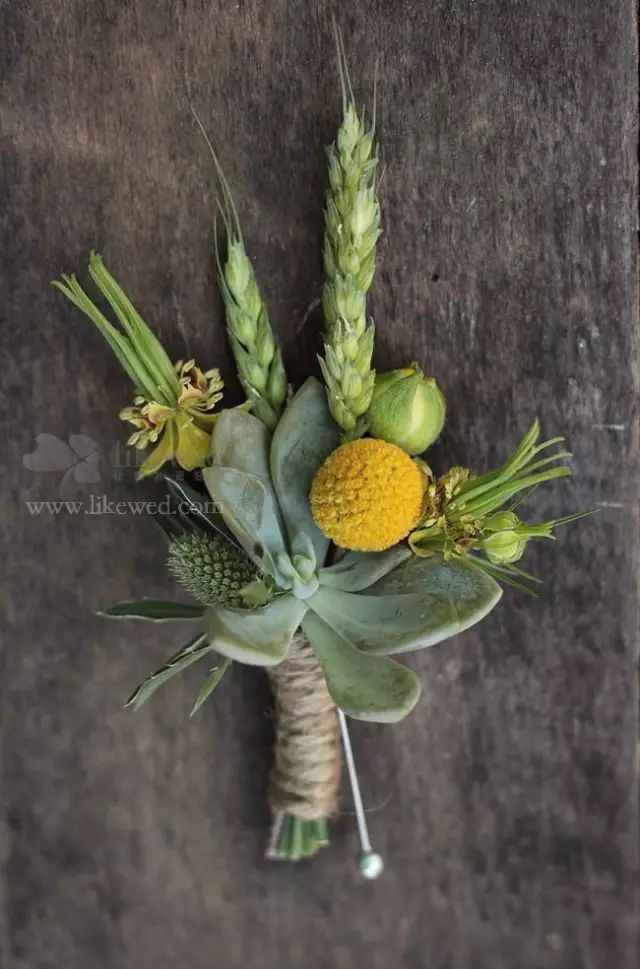 在金秋举行婚礼,一款创意的麦穗胸花会是非常衬景的的哦。漂亮的麦穗,配上各式的花材,是不是别具一格,也象征了新人即将收获幸福的未来。