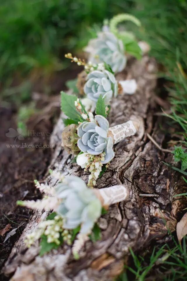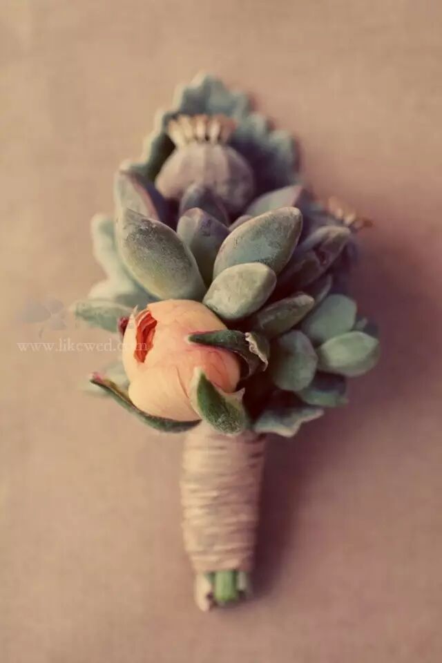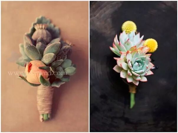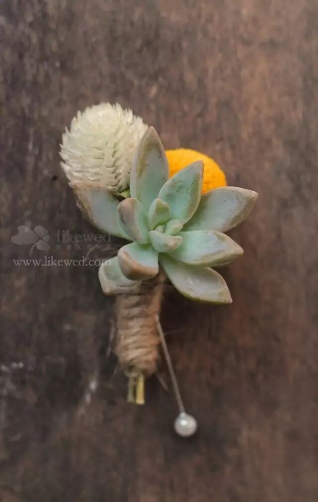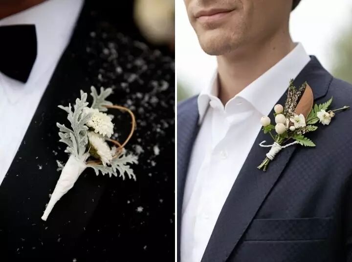 这一款胸花十分适合“闷骚”型新郎,看似简单低调,却让人忍不住多看几眼。不过中国的新郎需要慎用这款白色的胸花,因为老辈的人可能会觉得犯了中国传统婚礼上的禁忌之一。