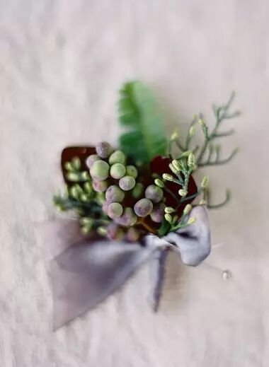 这是最中规中矩的一款新郎胸花,胸花的颜色和新郎西装的颜色相近,这也是最保险的搭配方法。