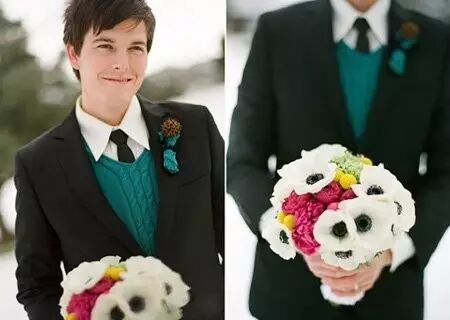 如果扣眼实在是太高,花束可以不插进扣眼里。但是,仍然要固定在领子上,而不是口袋上。