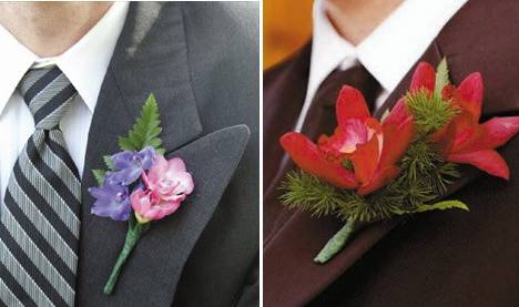 在婚礼中,新郎、伴郎、招待、司仪及新人的父母都需要胸花。其中新郎的胸花,通常是新娘捧花中的主花中摘取的,所以在选择新娘捧花时,也需要将此列入考虑的要件之一。