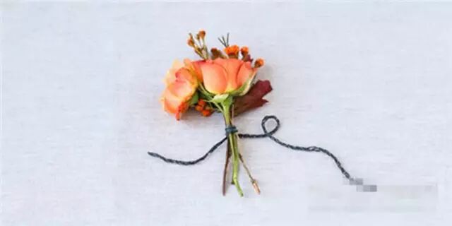细节注意:如果插戴的是康乃馨的话,花萼要整个陷到扣眼里去,然后被后面的绳圈固定住。