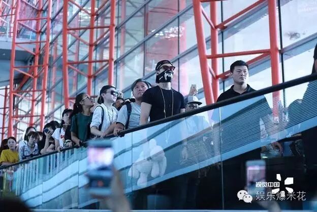 陈伟霆全黑造型现身北京机场,反戴黑色帽子、配红色墨镜及演唱会周边口罩。