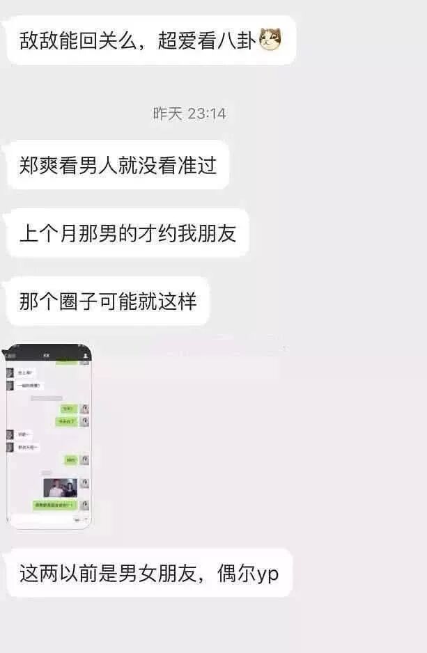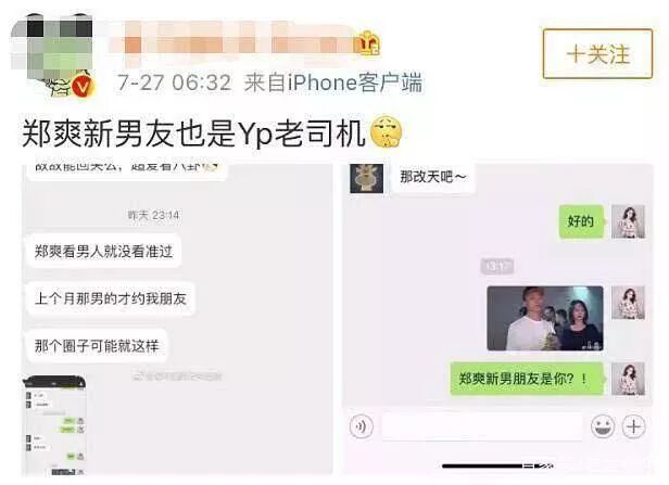 然而没想到的是,就在大家一股脑儿的给郑爽送上祝福时,新男友张恒近日被一位知情人士曝出猛料:郑爽新男友也是YP老司机!随后还放出了两张聊天截图。