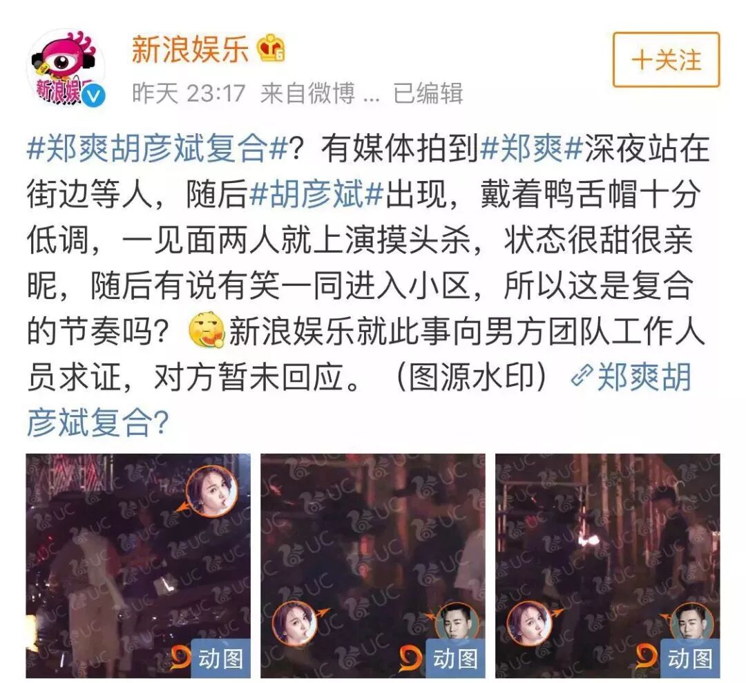 虽然水印打得丧心病狂,但还是能清楚辨认出这是郑爽和胡彦斌,摸头杀这么亲昵,很多网友都在怀疑他们是不是复合了。