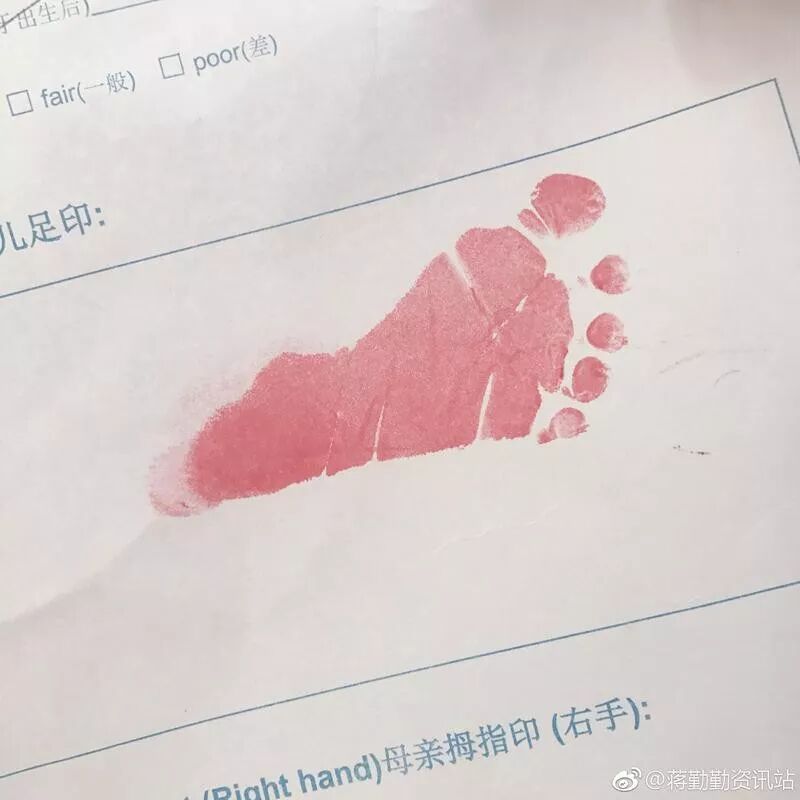 蒋勤勤这次生子,的确经历了不少坎坷,所幸,自己的努力换来的是孩子健康的成长,从蒋勤勤二胎儿子的脚印照来看,这一定是个可爱的大胖小子没错了,恭喜蒋勤勤和陈建斌,以后两个儿子在身边,夫妻俩的幸福再添一员!