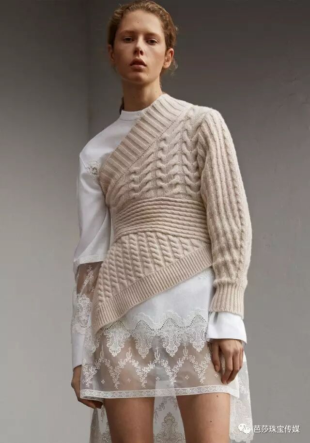 Burberry 巴宝莉 扭绳花纹斜肩不对称羊绒衫