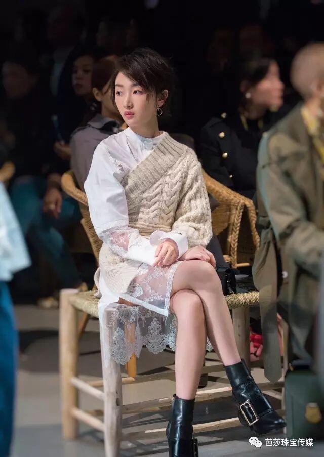而我们的小影后在秀场上的造型更是可圈可点。仅仅在白色蕾丝衬裙外套斜肩不对称羊绒衫就出门了,把几何不对称玩出了新花样~简单的金属耳环同样使用了不对称的手法,时髦简单还显脸小,莎莉鸡小姐又赢在造型上啦~