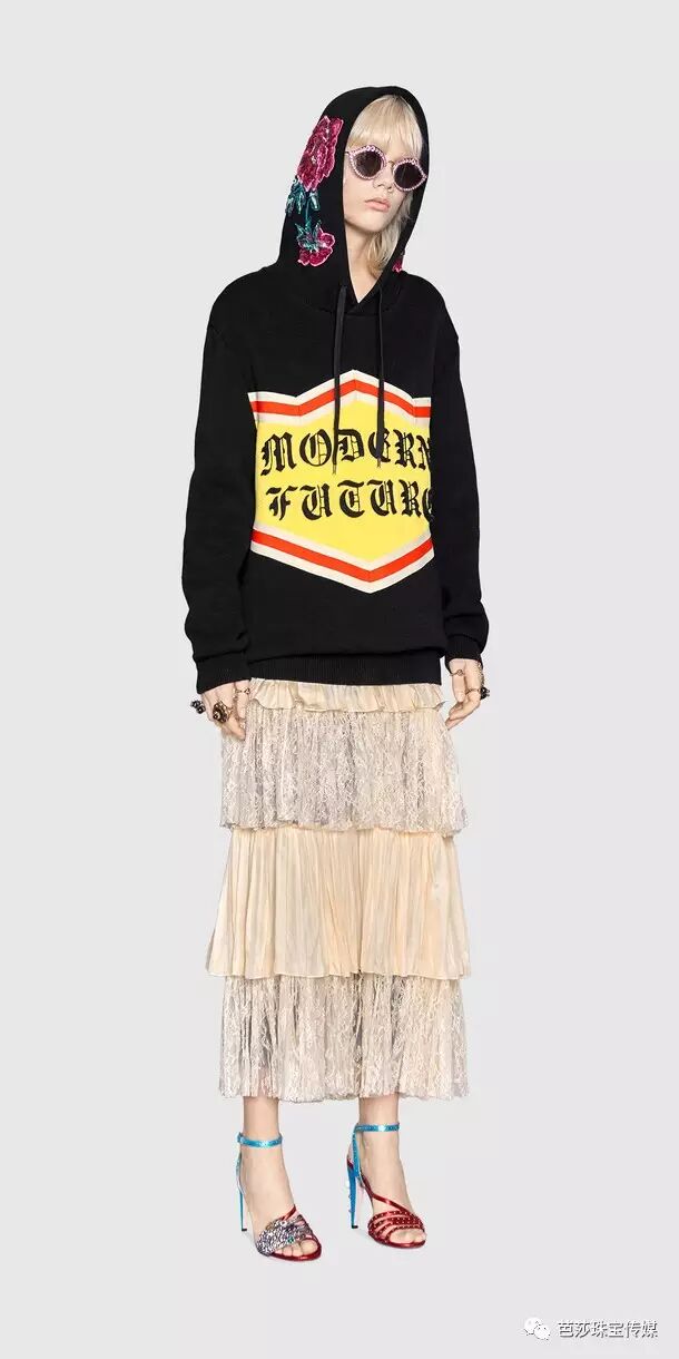 观秀后的after party春春换了一套look,身穿层叠的卫衣纱裙搭配上Gucci Le Marché des Merveilles系列戒指、手镯以及G-Frame系列腕表,中和了裙装的柔美,增添了几分帅气。