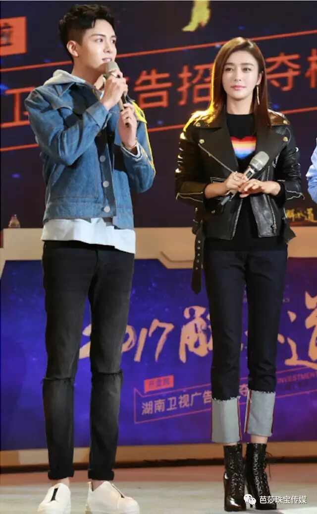 秦岚黑色外套酷感十足,非常富有机车范儿~只是全身黑色显得有些过于沉闷,而点点金色就是打破沉闷的点睛之笔!