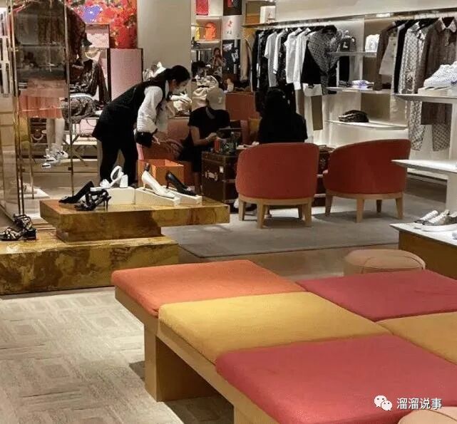 除此之外,该网友还晒出了一张刘涛与小伙伴一起坐在沙发上挑选东西的照片,埋着头听着工作人员讲述,十分认真。