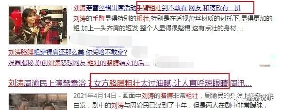 常年保持健身习惯的刘涛已经很自律了,即便如此,她的身材依旧会被吐槽。正如在刘涛主演的《大宋宫词》这部剧中,她的一段沐浴戏份便引来不少网友吐槽。对于露出肩膀手臂的刘涛,因为胳膊上赘肉痕迹明显,有网友便吐槽她胳膊粗壮太油腻,甚至还有网友表示刘涛粗壮的手臂和蒋欣都有一拼了。