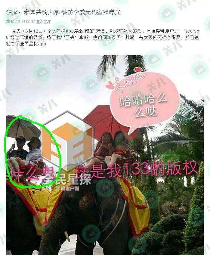 到了15年6月,风行突然爆出姚笛去三亚探班李威,还有两人在泰国游玩的照片,但是这个像素也太渣了吧……