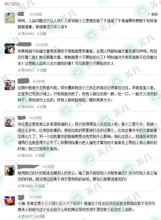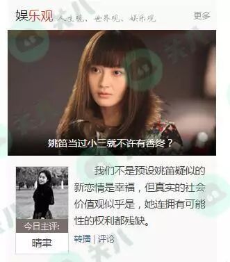 就在我以为姚笛终于走出了舆论阴影时,却发现图样图森破。某娱乐门户首页发表了一篇评论姚笛新恋情的文章,下面的热评却不忍直视。