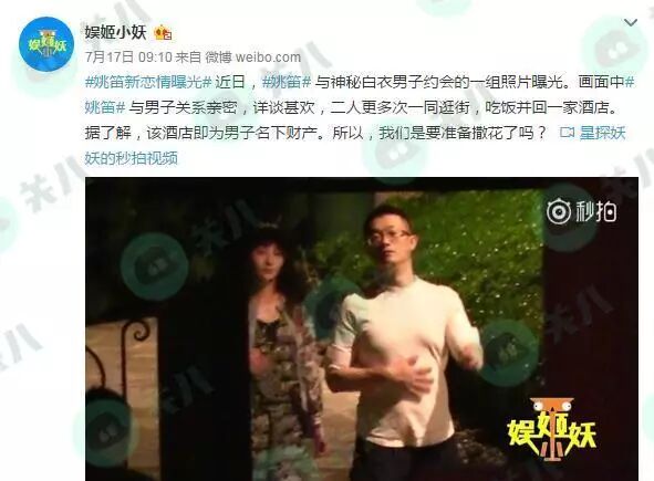 姚笛被媒体曝光了跟神秘男子多次约会的视频。