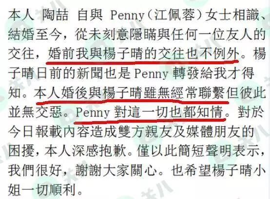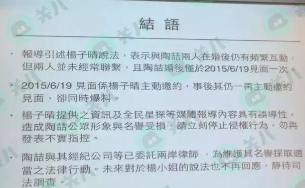 而这些“铁证”曝光后,陶喆在第一时间发声明,承认在婚前跟杨子晴交往过,婚后跟杨子晴联系过,但否认婚后出轨。