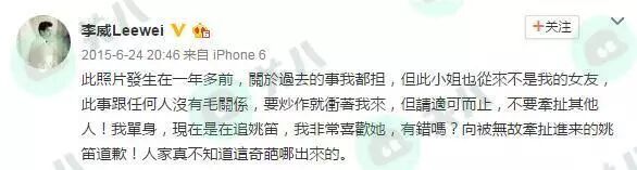 白天刚否认了跟房客的恋情,晚上李威就发微博,公开对姚笛示爱。